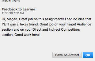 This assignment was my favorite to write throughout this semester. The assignment was to write a strategic message planner for a product of our choice. I chose to outline the YETI Rambler-Tumbler, and its usage. I enjoyed putting the strategic message planner together because of its take on advertising. I am an advertising minor and enjoy using different techniques to appeal to all types of audiences. Linked above is one copy of this selection accompanied with comments.